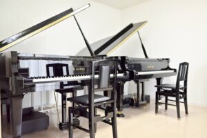 レッスン室にはグランドピアノが2台と電子ピアノがあります。